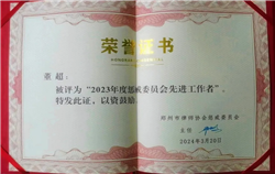 郑州市律师协会惩戒委员会近日评选出了“2023年度惩戒委员会先进工作者”,董超主任荣幸地成为其中一员。